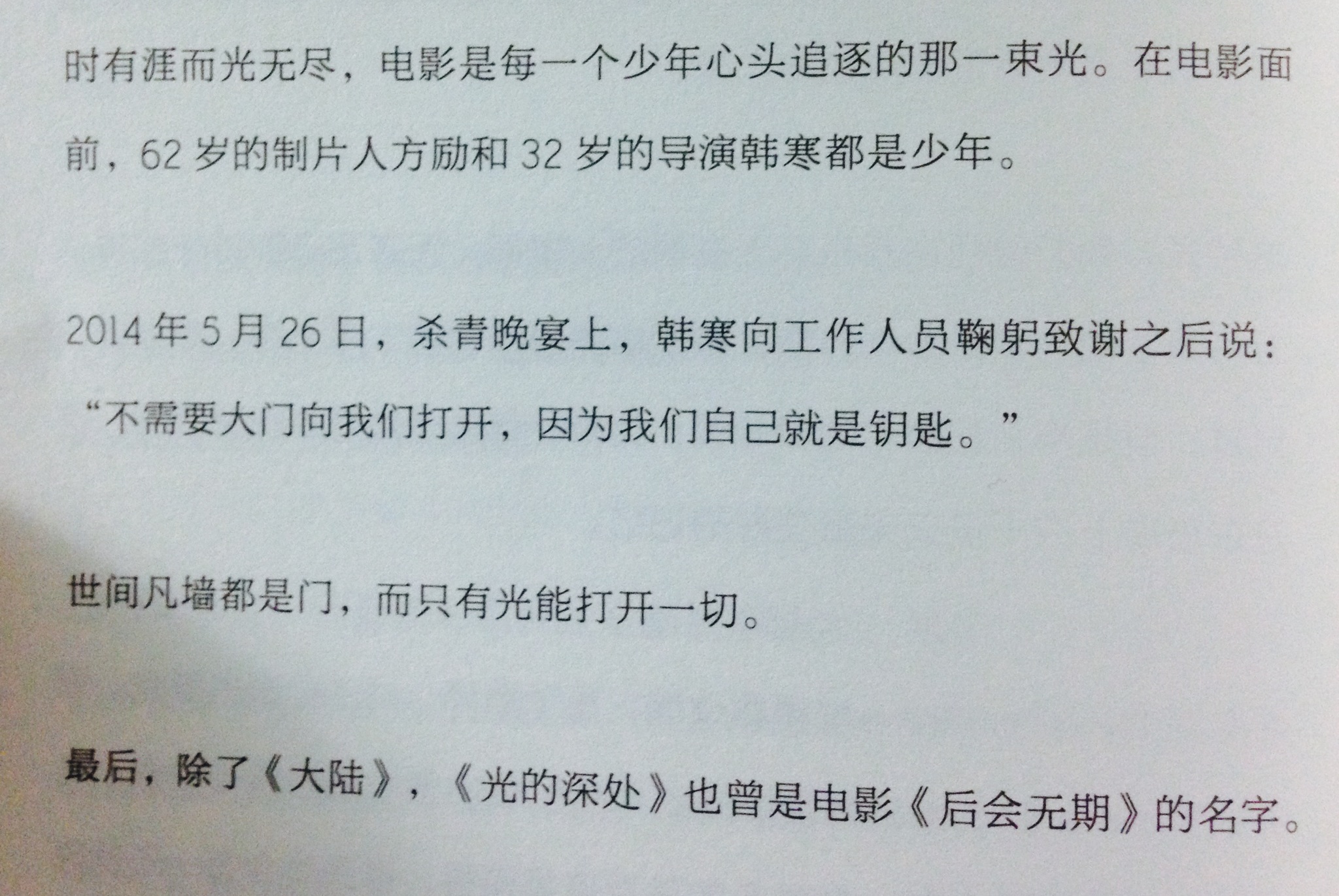 告白與告別.韓寒 Posted on 19 八月, 2014 by 黃以山 jshanwong Till then han han 告白與告別 韓寒/著 《後會無期》攝製組/編 分享此文: 分享到 X(在新視窗中開啟) X 分享到 Facebook(在新視窗中開啟) Facebook 喜歡 正在載入... 相關