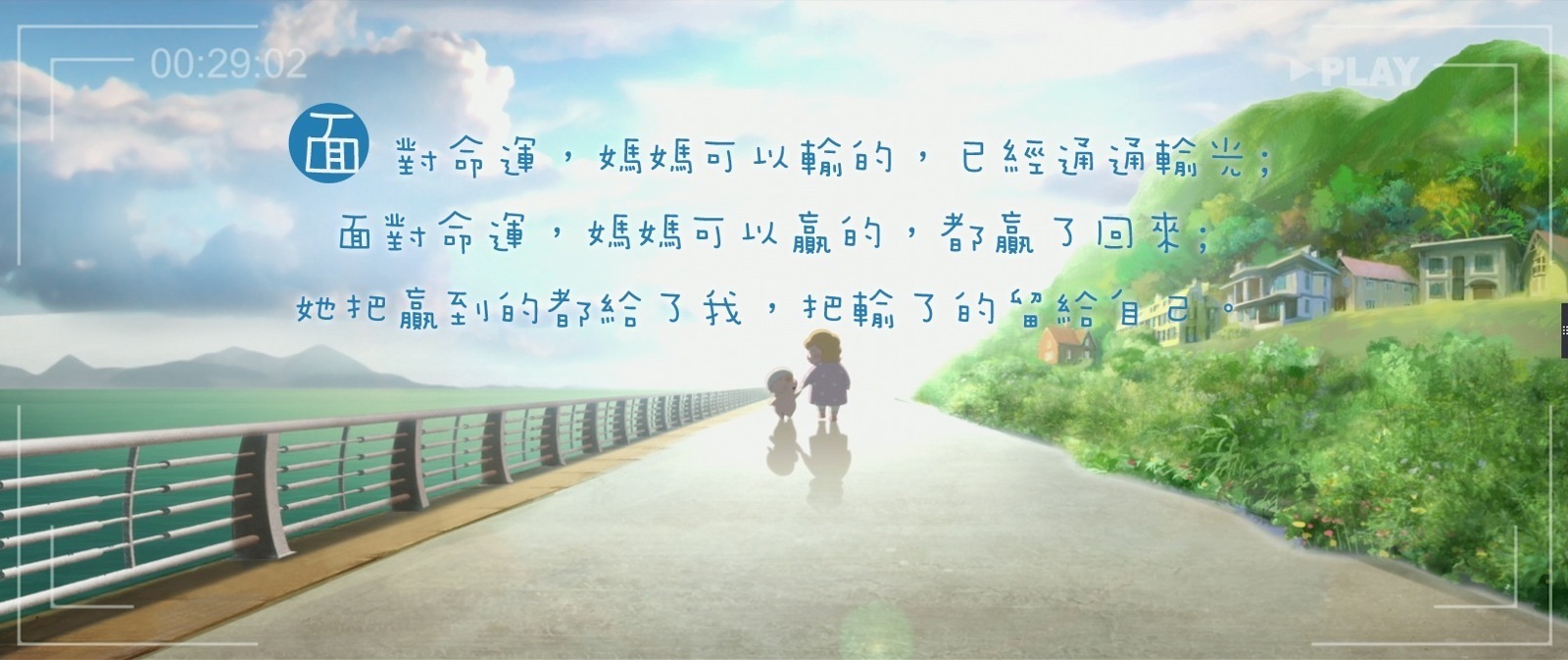 她把蠃到的都給了我,把輸了的留給自己。」- 麥兜.我和我媽媽