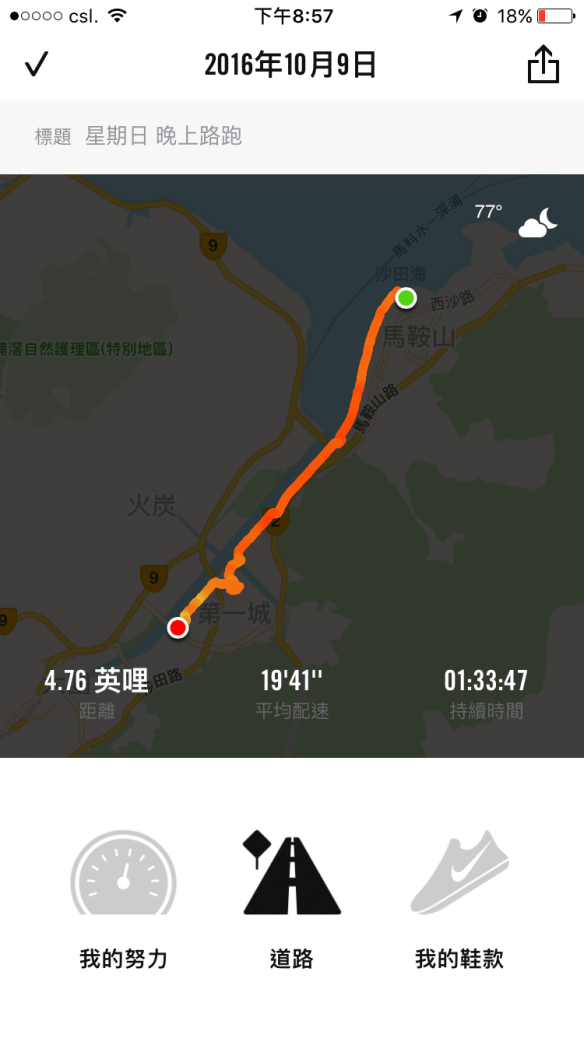 Jogging journal – 9 Oct 2016 – another walk from Ma On Shan to home Posted on 9 十月, 2016 by 黃以山 jshanwong 分享此文: 分享到 X(在新視窗中開啟) X 分享到 Facebook(在新視窗中開啟) Facebook 喜歡 正在載入... 相關