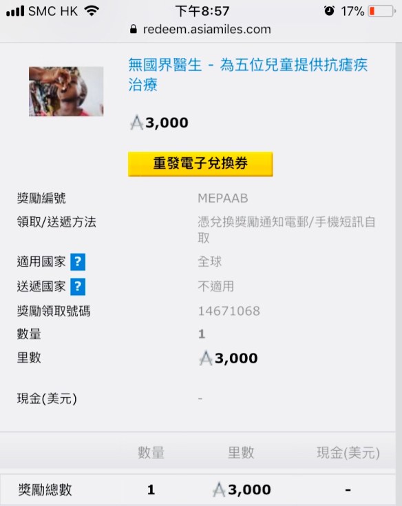 Asia Miles Posted on 17 二月, 2018 by 黃以山 jshanwong Thanks for having a choice to donate my nearly expired Asia miles to the ones in need. 分享此文: 按一下即可分享至 X(在新視窗中開啟) X 按一下以分享至 Facebook(在新視窗中開啟) Facebook 喜歡 正在載入... 相關